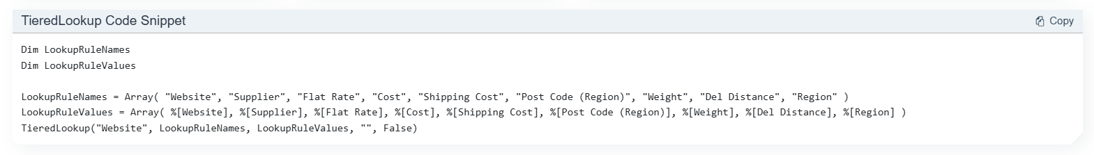 - TieredLookup Function Snippet