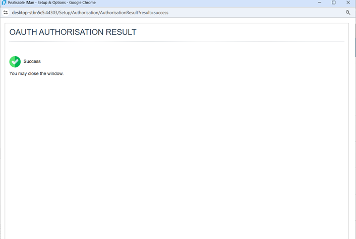 Following consent and successful token exchange between IMan Authorisation service and the authorisation service a corresponding success / failure screen will be displayed.