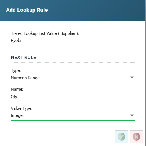 Add/Edit/Delete Lookup Rule (Tiered List Value)