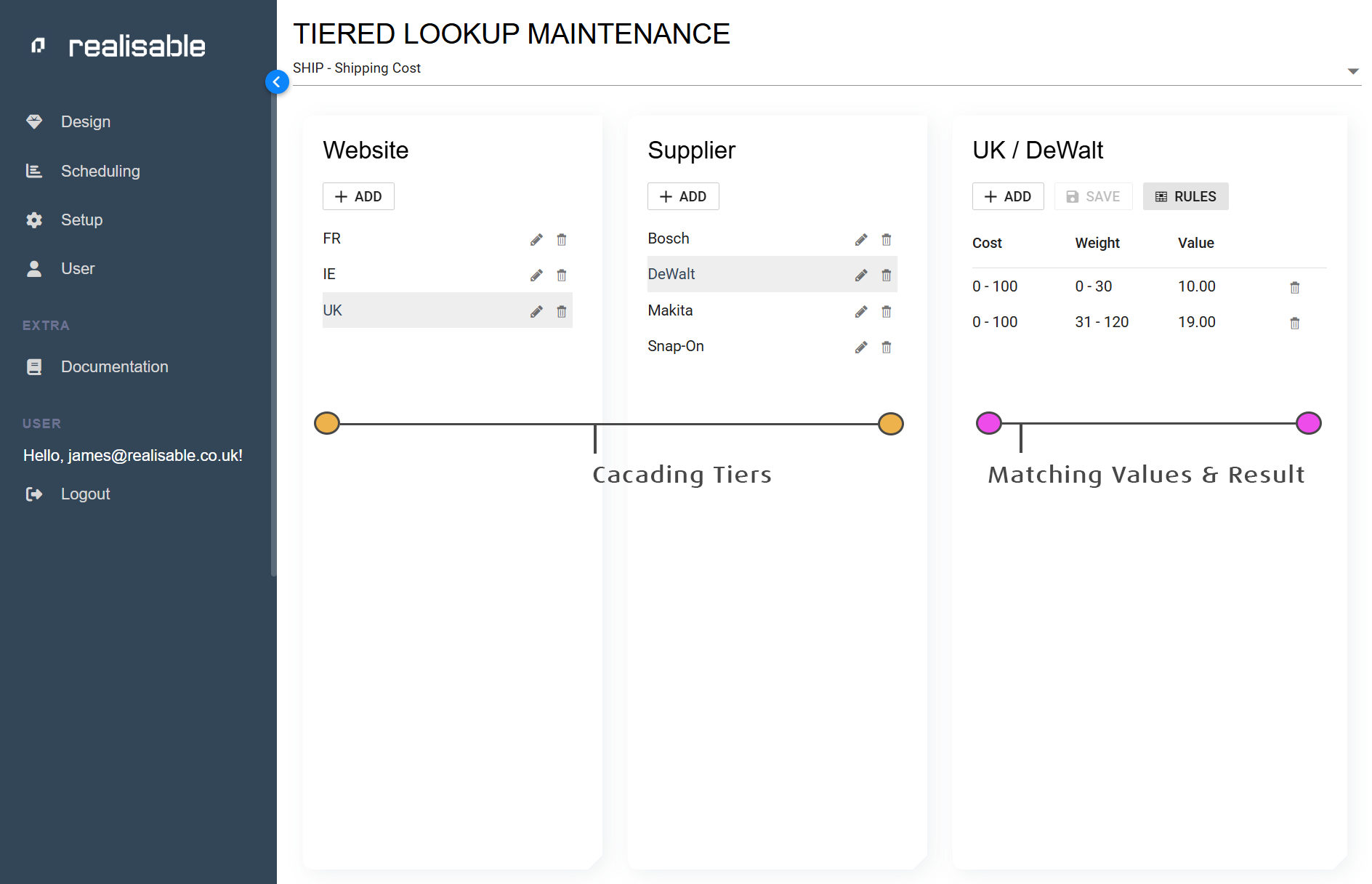 - New Tiered Lookup – Tiered lookups allow you to define cascading lists of data which can be queried through an accompanying TieredLookup function. Tiered Lookups can have differing rules attached to any one lookup. For example shipping rules can be maintained where rules are based on differing combinations of criteria i.e. weight, supplier, quantity, product type.