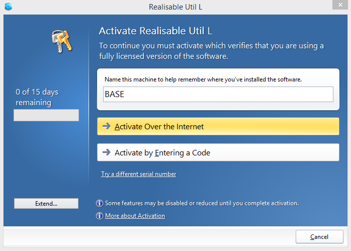 - If the workstation or server is connected to the internet press Activate Over the Internet.
