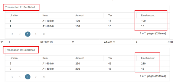 The LineAmount field will now have the Amount and Tax fields transposed.