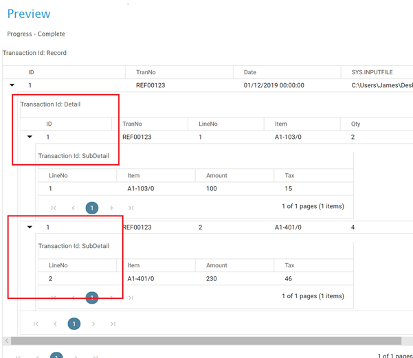 - Add an Aggregate transform, click the Field Mapping tab & change the Current Transaction Id to SubDetail.