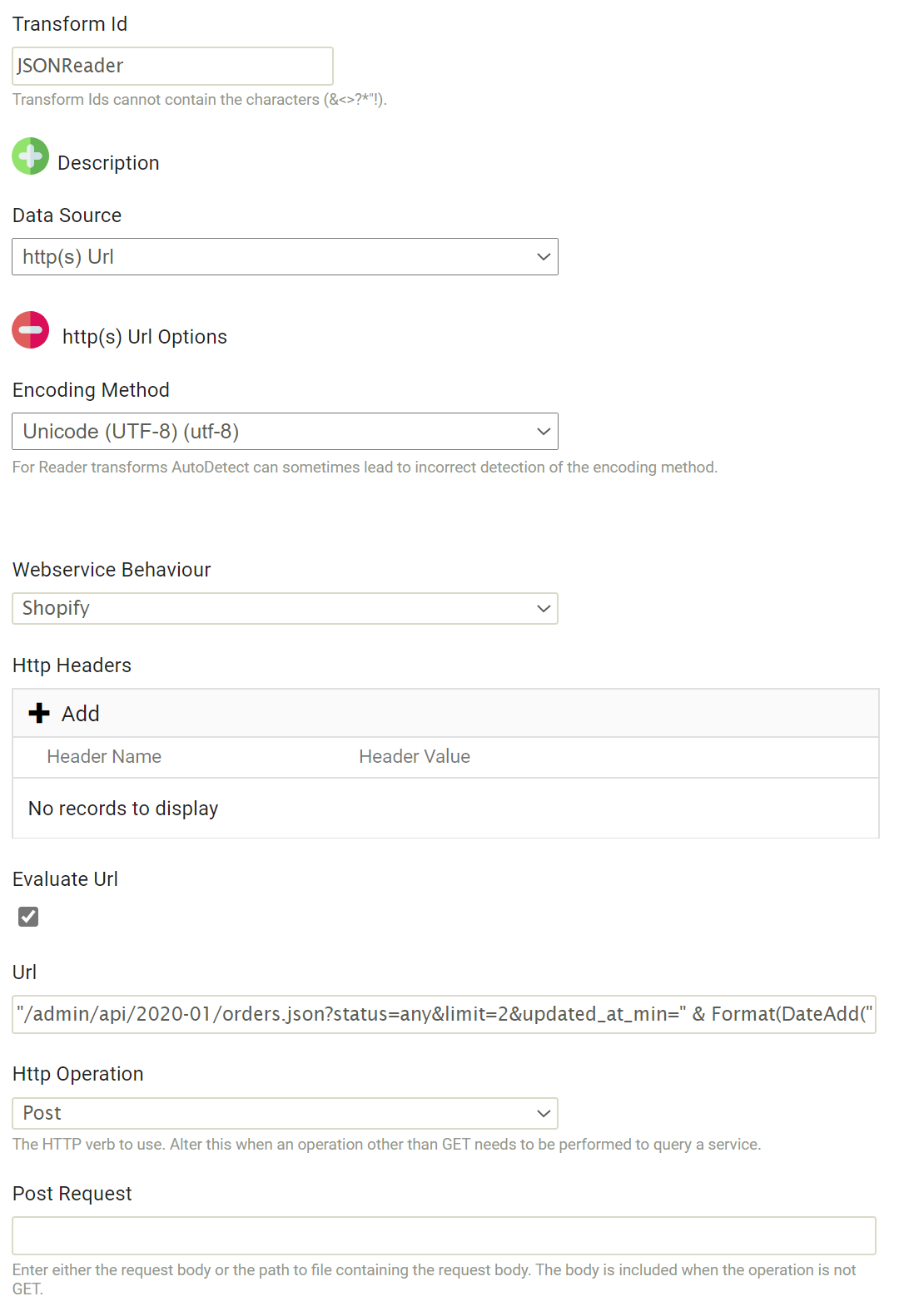 The default operation for Readers will be a GET request. If the request needs to use another operation (POST, PUT, MERGE, PATCH) it can be chosen from this picklist.