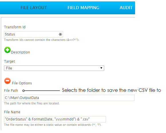 - The file will be created in the Folder selected through the File Path field in the File Options:
