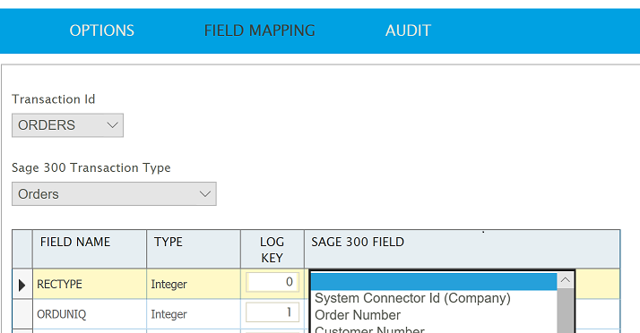 The topmost view of each import type includes a field ‘System Connector Id (Company)’. The field allows you to dynamically specify the system id (which then maps onto a Sage300 company) to import the data to. This field allows data to be imported into multiple Sage300 companies without having to setup individual connector transforms.