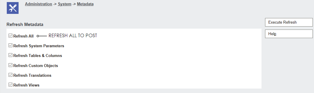 - Go Administration -> System -> MetaData -> Refresh All -> Execute Refresh.