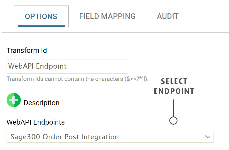 The first transform in a WebAPI integration is the WebAPI Reader; the WebAPI reader associates the endpoint with an integration and parses the request into fields.