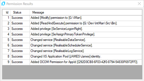When all changes to permissions can be successfully made you will see all successes within the prompt as shown below: