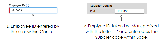 IMan requires the Concur Employee ID field in the Concur User setup to be filled. This ID will be used when creating supplier records within Sage.