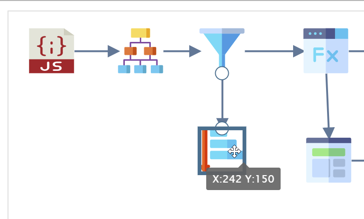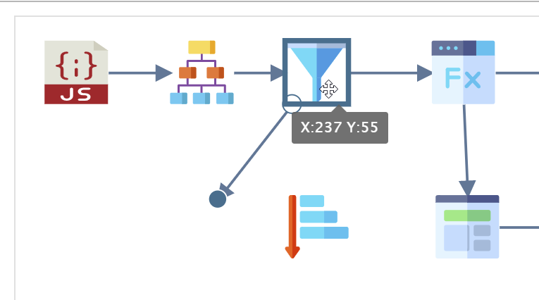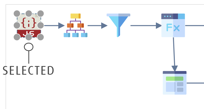 - Select the connector and drag one of the endpoints to a transform until the transaction is highlighted and the endpoint changes to white.