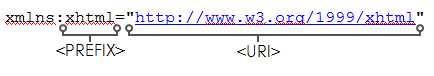 xmlns:<prefix>="<uri>"