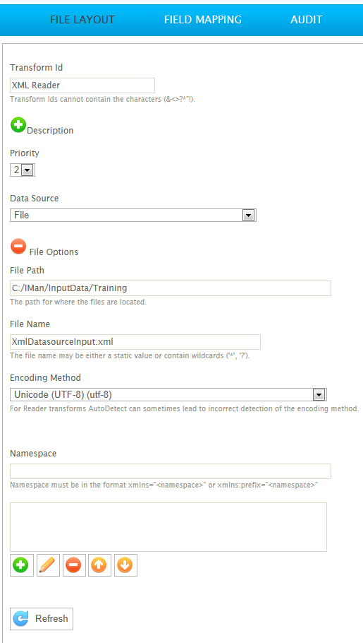 The XML Read transform uses XPath expressions to obtain record and field values from XML files. Therefore it is necessary to be familiar with XPath and XML Document structure before setting up an XML Read transform.
