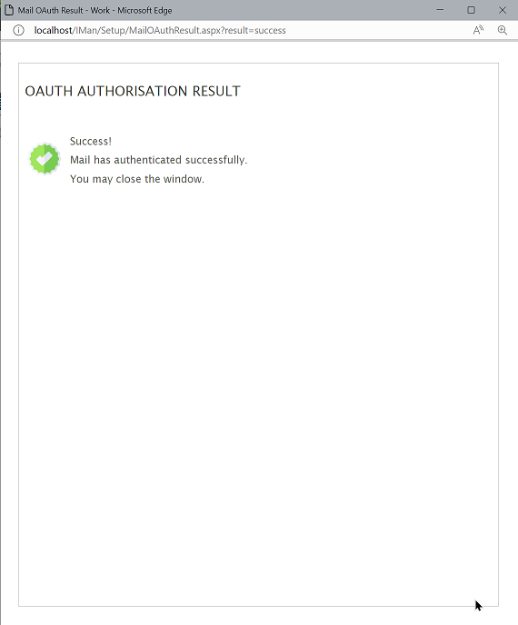 From either the Smtp or Pop 3 configuration pages press Authorise.