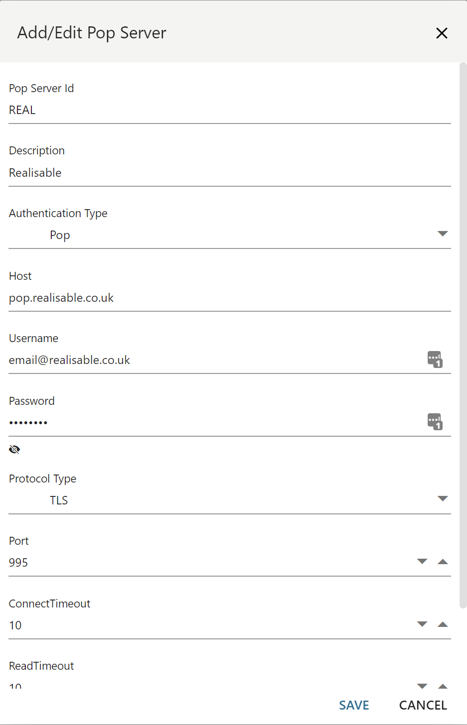 This screen is used to configure the POP3 server(s) used for any inbound mail related function such as: