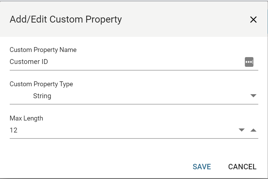 A property must have a name, can either be of Boolean or String type. String types allow you to set the Maximum Length.