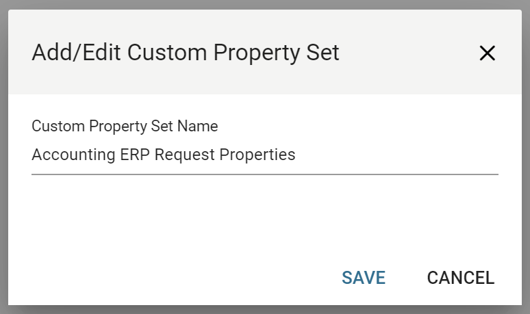 When creating a property set the name is defined; the properties are defined on a separate screen.