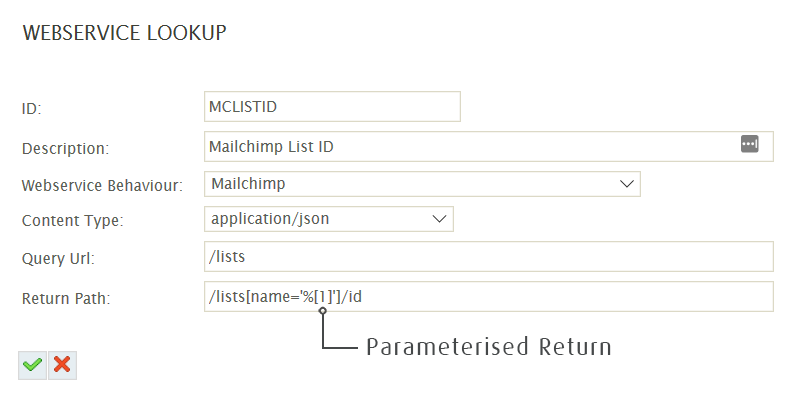 The Url may be parameterised using by specifying in the form of %[1], %[2], %[3], and so on, where the each parameter is replaced with the corresponding values passed from the wherevalues argument of WebserviceLookup function.