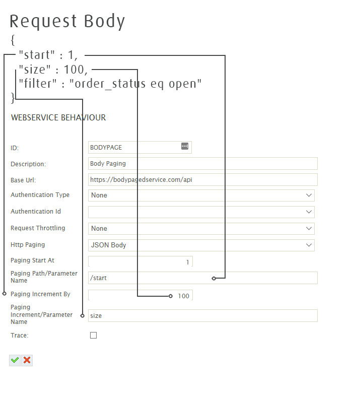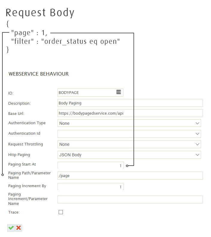 Body Paging has four properties to control its operation. This allows you to integrate with services which have implemented Body Paging differently.