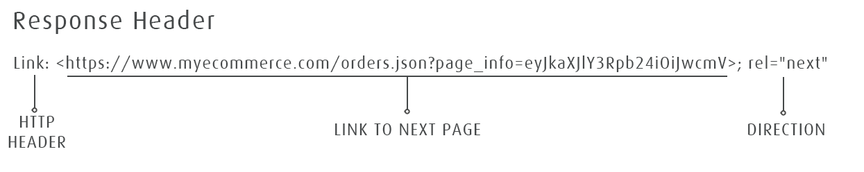 Each response has a 'Link' http header. The next page of data is value contained within the angled brackets which is defined by the 'next' value per the 'rel' tag.