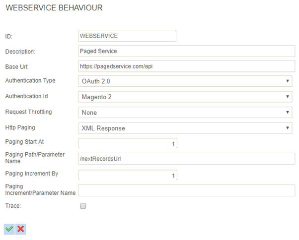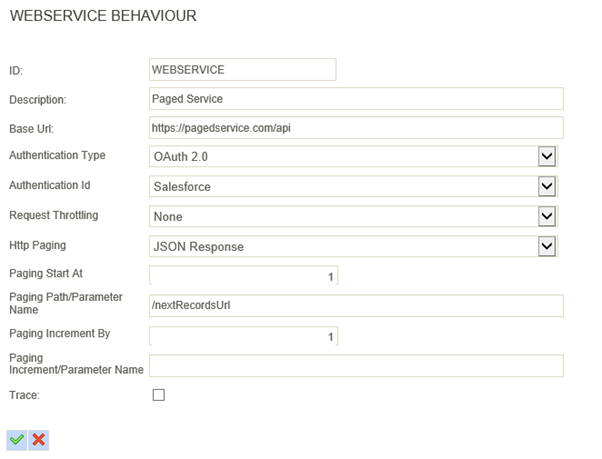 2. The next page of data is determined by obtaining the value from the response specified by the Paging Path of the Webservice Behaviour.