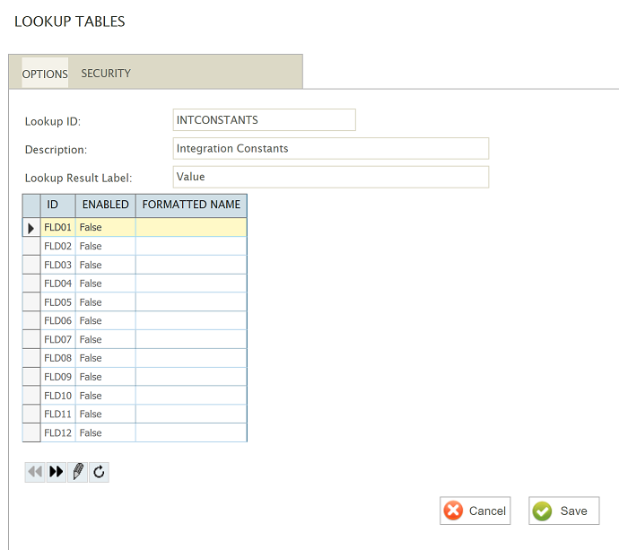 3. Click on the Lookups menu option, and create a new Lookup, using the following options (for simplicity the Lookup ID is the same as the Lookup table ID).