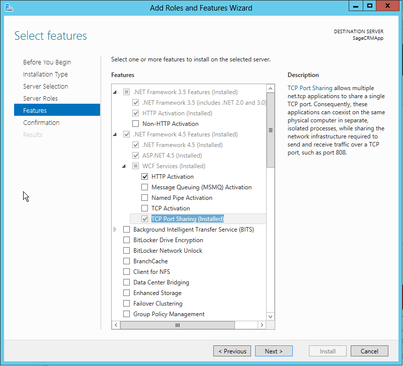 • It is important to ensure that you check that .net 4.8 is installed as it is not part of the Windows Features.