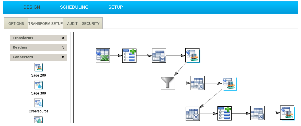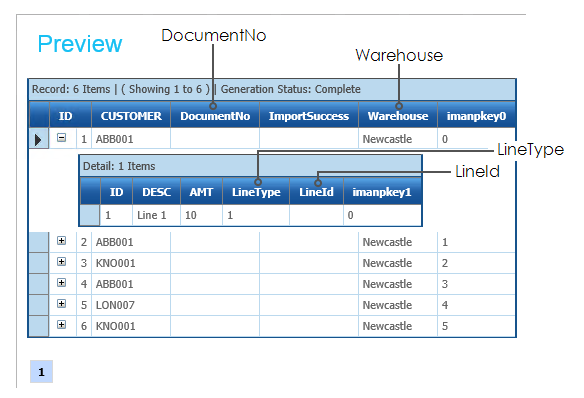 Transform the flat data set into a hierarchical one consisting of a header and details which can be accepted into Sage200.