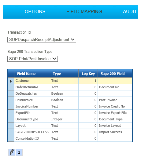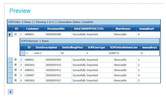 In this step we simply map the fields onto Sage to create the SOP Sales Order. If the orders can be successfully imported both the DocumentNo and LineId fields will be populated.