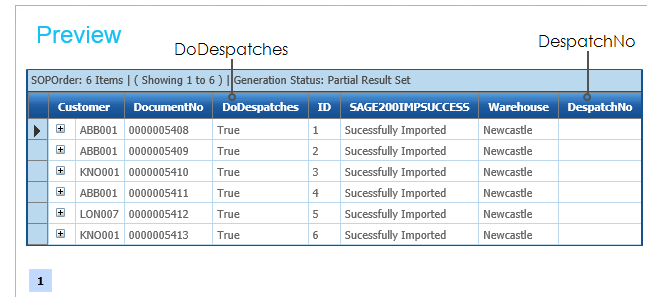 The DespatchNo field is added and left blank for now. In the next Sage200 connector this field will be mapped to the Despatch Receipt Number
