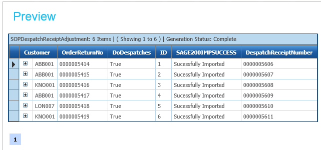 In this step additional fields are added to the data set to allow the dispatch document to be created in Sage, and let us know that it has succeeded.