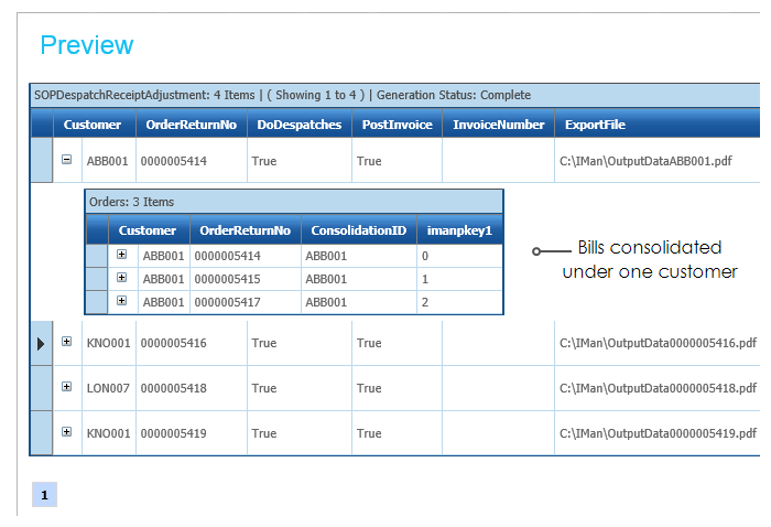 1. When refreshed the dataset will now group any orders by their ConsolidationID.