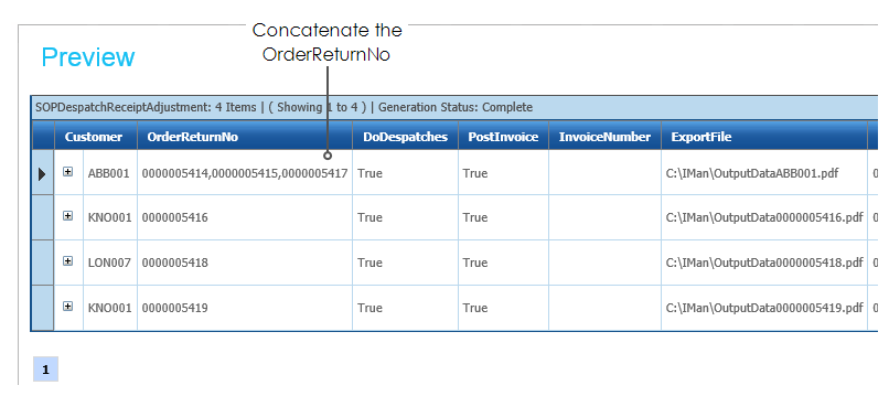 In order to produce a consolidated invoice, we need to construct a comma-delimited field for each of the orders that you wish to generate a consolidated invoice for.