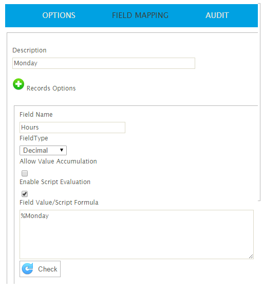 - To set the Hour field of this record to Monday’s value the Hours field simply references the Monday column.