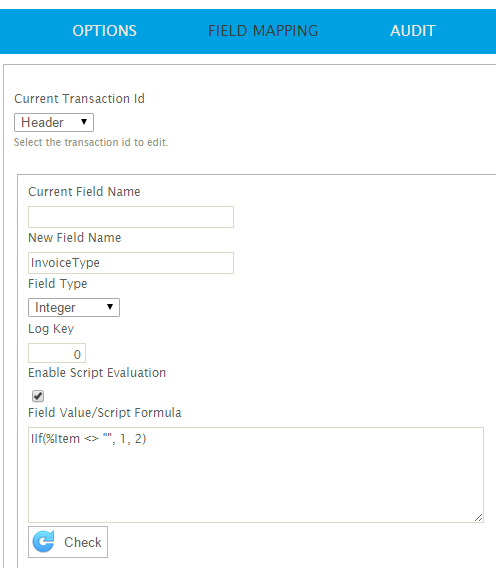 The InvoiceType field in the invoice header (Header) uses a formula to determine if an invoice is a summary or item invoice.