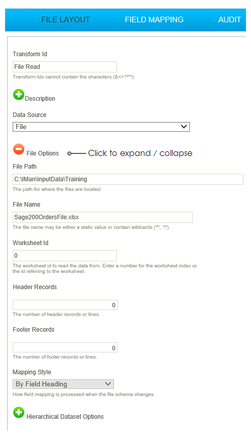 Transform > File Layout