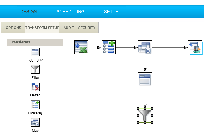 - Drag a filter transform and connect it to the Aggregate transform.