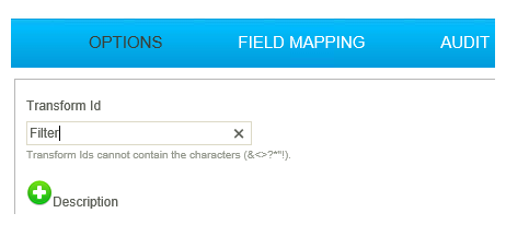 - Double click to open its setup; rename its Transform Id to Filter.