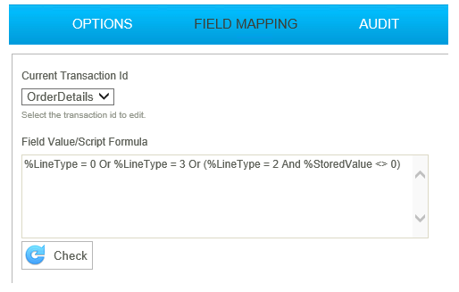 - Click on the Field Mapping tab, and select the OrderDetails transaction.