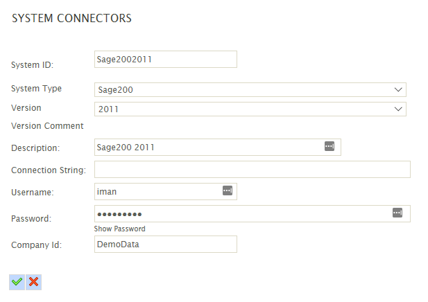 - The Sage200 Company Name (not the Database Name) as per the Sage System Administration.