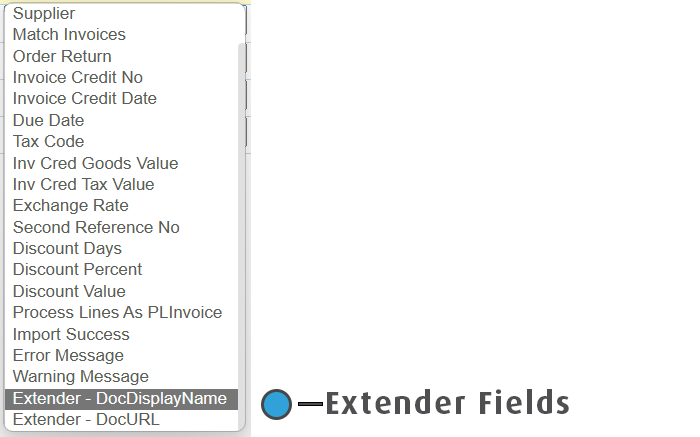Extender fields are shown at the bottom of the field pick list and are prefixed with the name 'Extender - '.