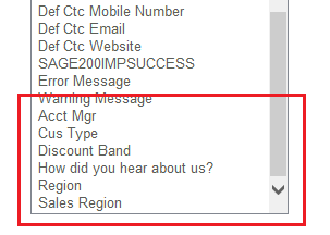 Sage200 Analysis Codes are supported intrinsically and are listed at the bottom of each field drop-down. The optional fields are dynamically listed and based on the company of the System Id field of the connector setup.