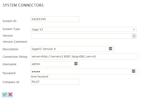 - Create a new connector by double clicking the empty row at the top of the grid and enter the following details.