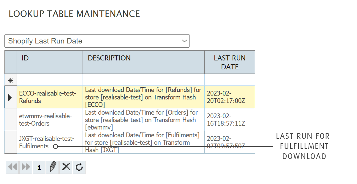 IMan maintains a lookup table to keep track of the last date/time an fulfillment download is performed. Each time the fulfillment download is run, the records in this table are updated. A record is maintained for each Shopify Reader which downloads orders.