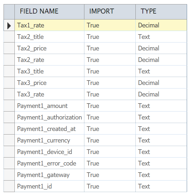 The fields provided in the Payments entity include everything except for those within the 'Receipt' object. If you need to access these we recommend doing a Shopify Lookups lookup in a Map transform (or wherever those fields are required).