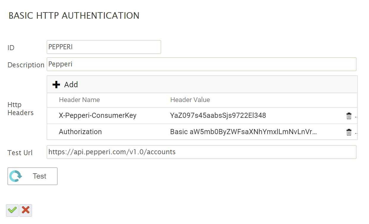 The header setup control (as shown below) makes the Basic Authentication setup a little more intuitive, particularly configurations requiring additional headers.
