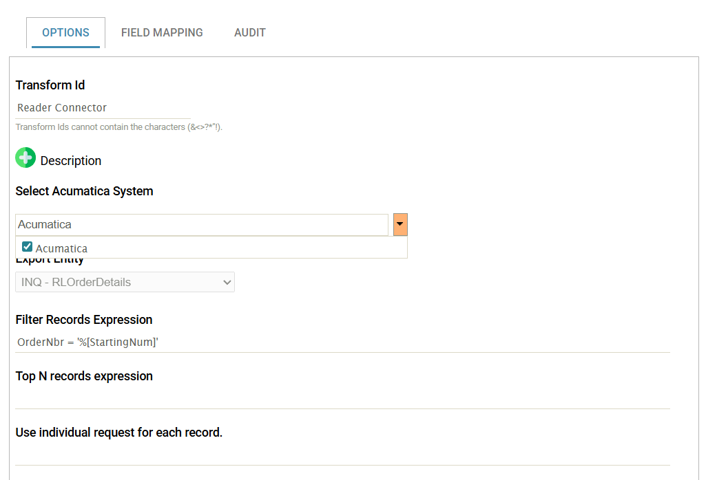 Multiple Acumatica instances can be queried as part of a single Read operation. This allows you retrieve data from these multiple instances (or entities) using the same Reader Options (Filter, etc).