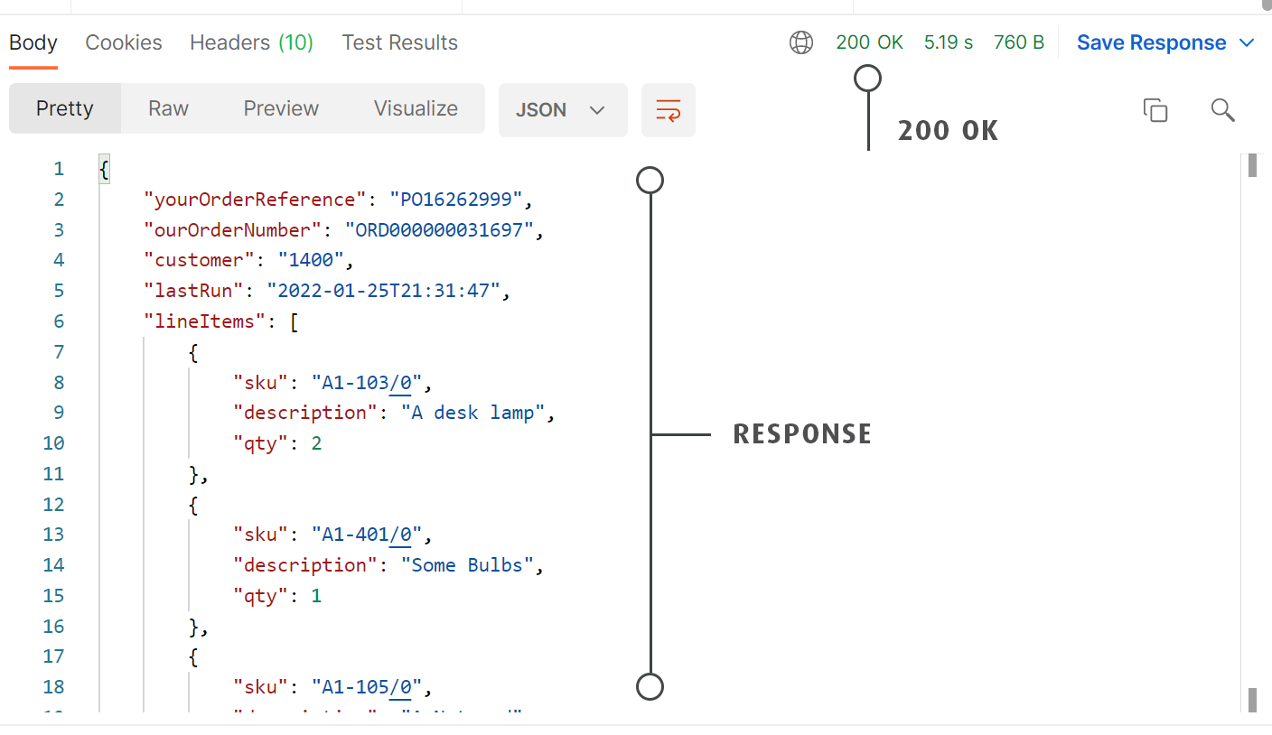 - Send a request. The first request may take a moment longer than subsequent requests as the endpoint needs to load and cache the integration configuration.