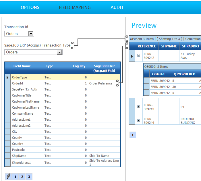 Select the OrderDetails from the transaction Id and select Order Details from the Sage300 Transaction Type drop down. (This will map the transaction type to Sage300 view).