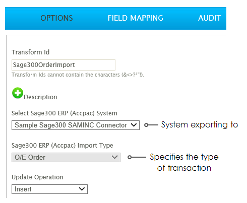 The Sage300 Connector defines the mapping of the data into the SAMINC O/E Order.